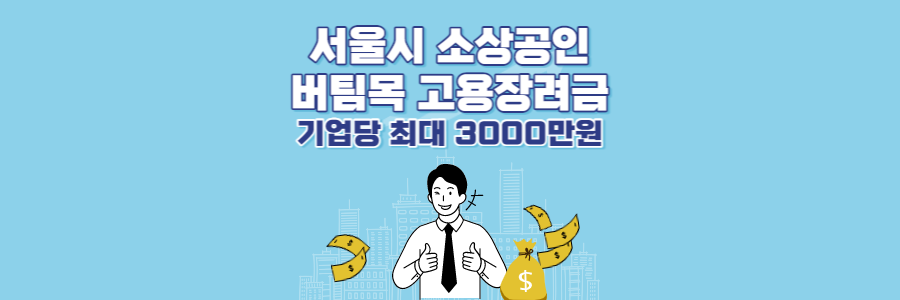 경기가 어려운 요즘 소상공인 분들께 아주 좋은 소식이 있습니다. 서울시에서 소상공인 버팀목 고용장려금 제도를 시행한다고 합니다. 근로자 1명 당 300만 원을 지원해 준다고 합니다. 기업 당 최대 10명까지 지급 받으실 수 있습니다.